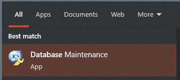 2) Open the Database Maintenance app. If you don't have a desktop shortcut, search for "Database Maintenance" in the Windows start menu.
