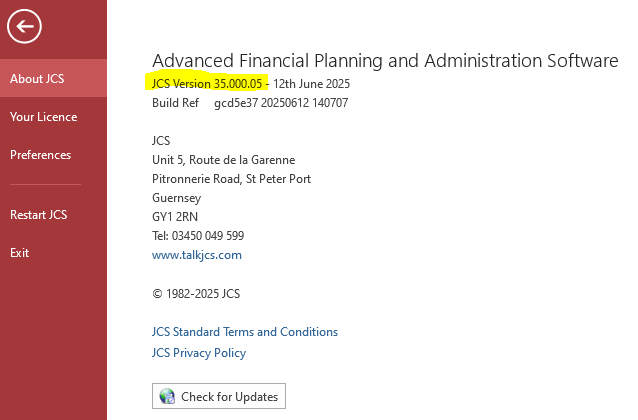 For example a user on JCS version 35.005.03 and another user on JCS version 35.005.07 will not cause any problems. Therefore if the first two segments of the JCS version are the same it is safe to have users at your company on different versions of JCS, and updating can be done without getting everyone out of the software.